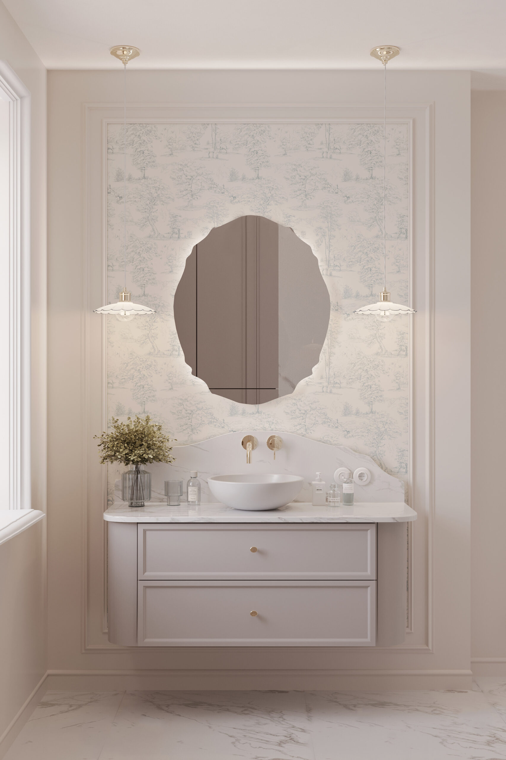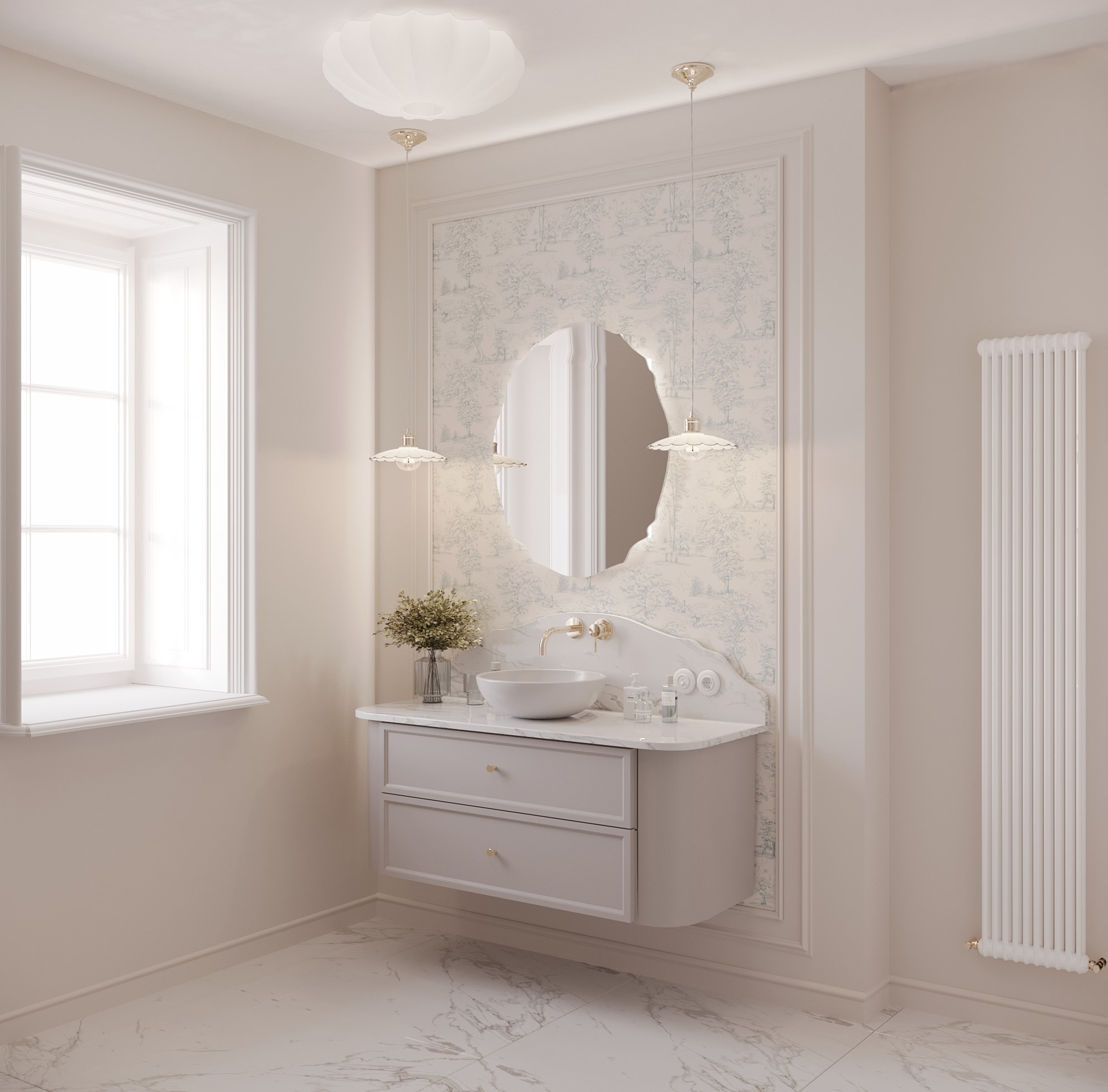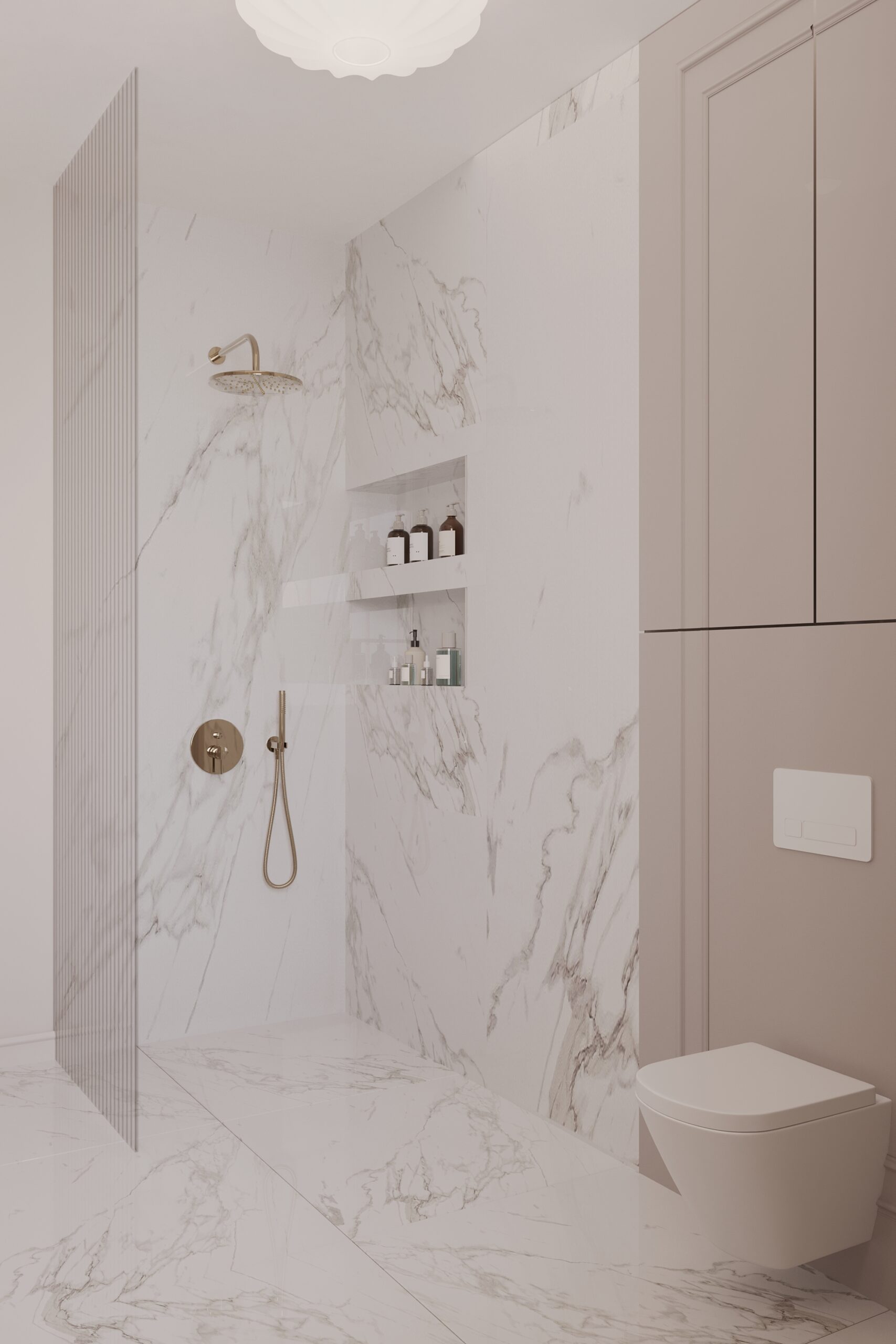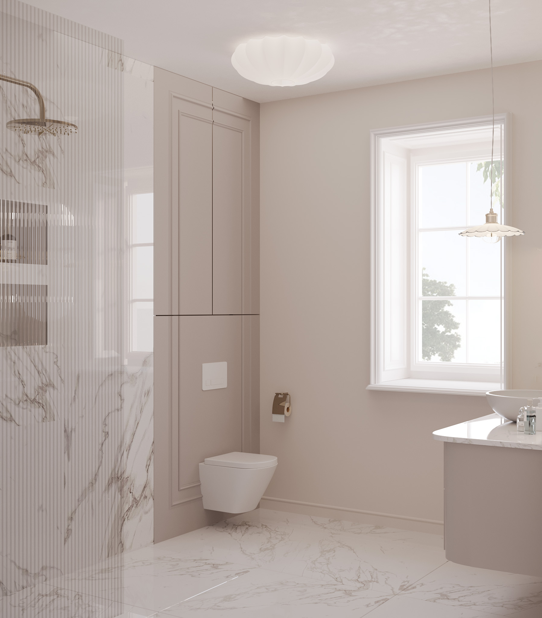 Podobną koncepcję zastosowaliśmy w łazience, gdzie również przygotowaliśmy dwie opcje: